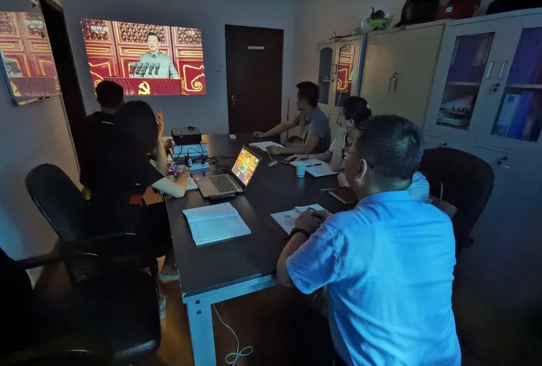 机勘院党委积极组织党员群众集中收看了庆祝大会电视直播,院党政领班子成员、高管,各党支部书记在五楼会议室集中收看庆祝中国共产党成立100周年大会实况转播,共同见证了这激动人心的历史时刻。各党支部按照院党委统一部署,组织党员群众集体收听收看,此次活动共计300余人参加。