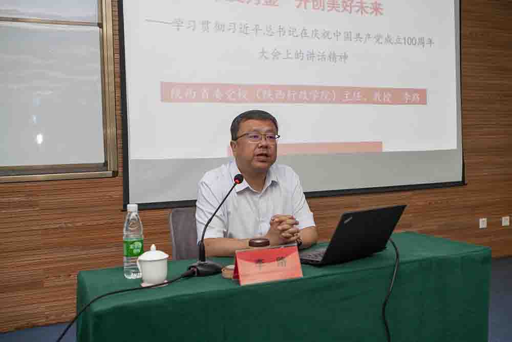 为认真学习贯彻习近平总书记在庆祝中国共产党成立100 周年大会上的重要讲话精神,持续推动党史学习教育走深走实,7 月 16 日,院党委组织召开学习贯彻习近平总书记“七一”重要讲话精神专题报告会,邀请到陕西省委党校(陕西行政学院)中国特色社会主义理论研究中心主任、党史学习教育陕西省委宣讲团成员李路教授作专题报告。院党委书记、董事长黄玉明主持会议。