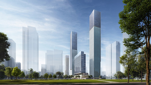 高新望云松间项目地处西安市西高新政务中心核心区(科技六路与高新路十字东南角),紧邻规划地铁11号线和已运营6号线。规划总用地面积20799.18㎡(31.18亩),总建筑面积168120㎡,其中1#2#塔楼建筑高度249m(地下3层、地上52层),3#高层酒店建筑高度100.3m(地下3层,地上23层)。