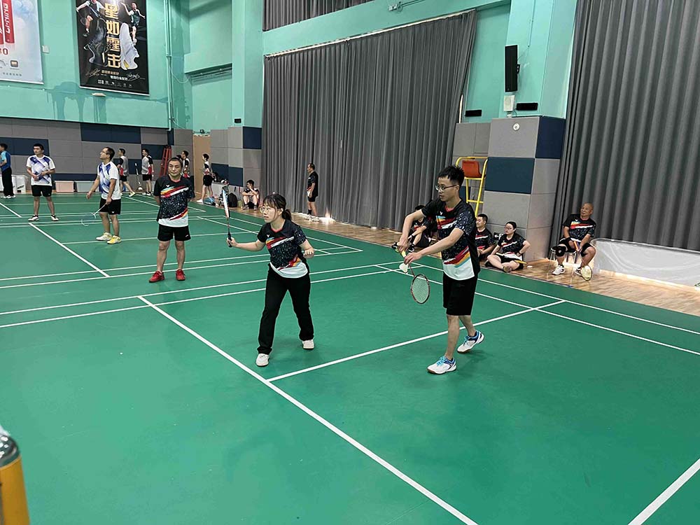赛场上,各参赛队精心组织,选手们精神饱满、斗志昂扬,他们灵活地转身,强有力的扣杀,将出色的动作技巧、默契的团队配合发挥得淋漓尽致,以顽强拼搏的精神引来场下的阵阵喝彩,展现出机勘人敢打敢拼、昂扬向上的精神风貌。比赛期间,羽毛球馆的呐喊声、加油声、此起彼伏。