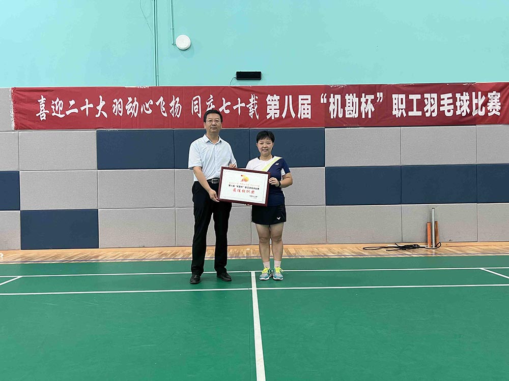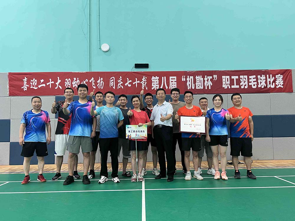 为迎接党的二十大胜利召开,庆祝机勘院建院70周年,进一步丰富职工文化生活,增强企业凝聚力,营造奋勇争先、积极向上的工作氛围,活跃员工文体生活,积极推进职工健身,切实提升职工健康水平,7月23日,由院工会、团委主办的“喜迎二十大羽动心飞扬同庆七十载”第八届“机勘杯”职工羽毛球赛在幸福林带综合体育馆举行。院工会主席王东红出席活动。