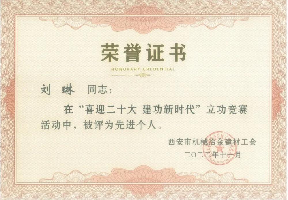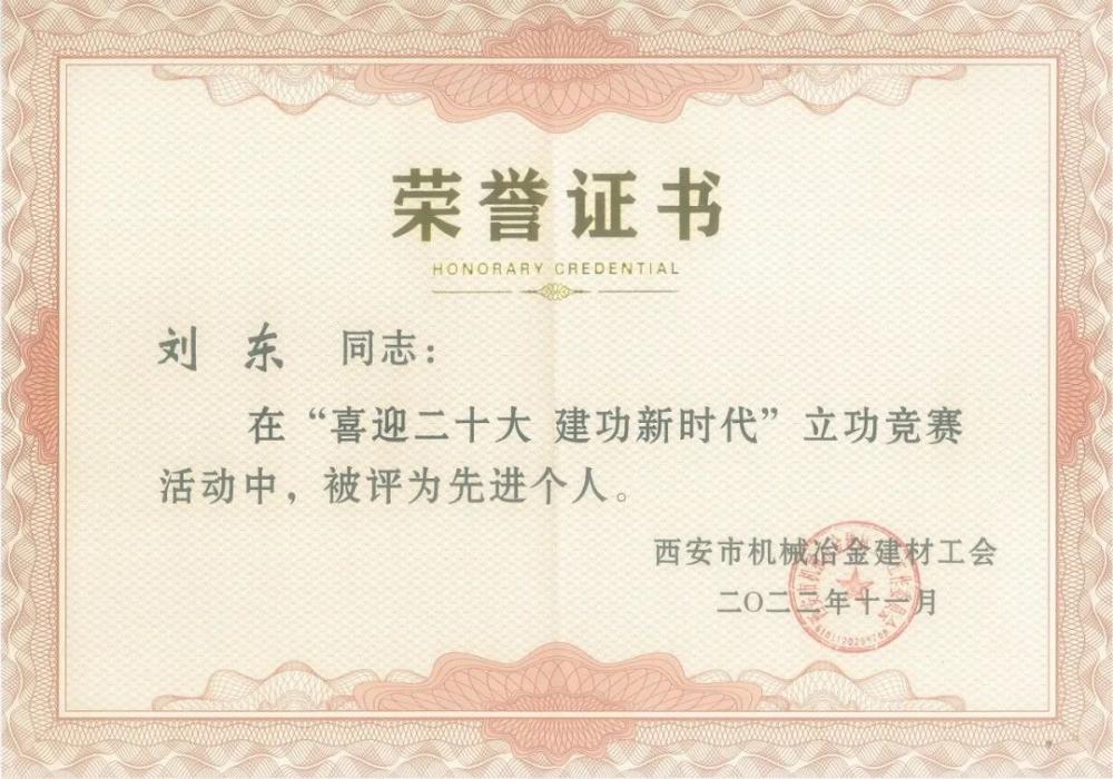 【概要描述】 【概要描述】西安市机械冶金建材工会发布了《关于表彰2022年“十佳机械工匠人才”立功竞赛先进集体先进个人的通报》(市机工发〔2022〕27号)。其中,机勘院荣获2022年“喜迎二十大、建功新时代”立功竞赛先进集体;下属既有建筑物鉴定与加固中心荣获2022年立功竞赛先进班组;刘东、刘琳、马云峰三名同志被授予2022年立功竞赛先进个人荣誉称号。