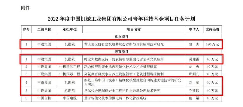 科技动态 | 机勘院四项科研项目获批国机集团青年科技基金项目立项