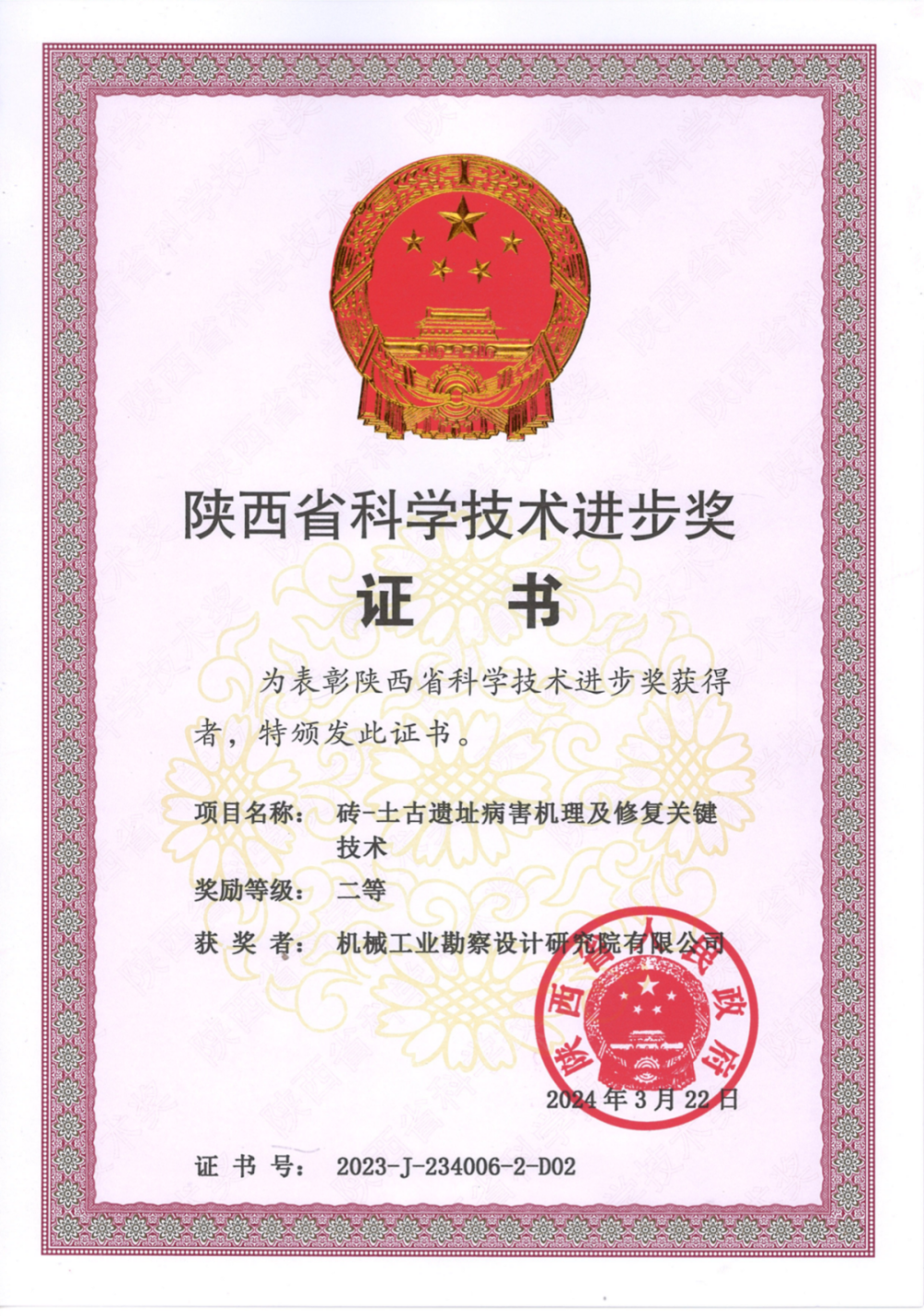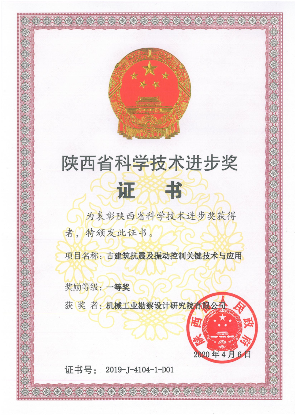 机勘院进一步对古建筑在强地震或长期振动影响下的性能退化评估、振动传播机制、容许振动标准,以及加固控制技术进行了系统性研究。经权威专家评审,总体已达到国际先进水平,特别是在砖木结构的抗震与振动控制方面,更是领先国际,树立了新的标杆,在此基础上形成的成果荣获了2019年陕西省科技进步一等奖。