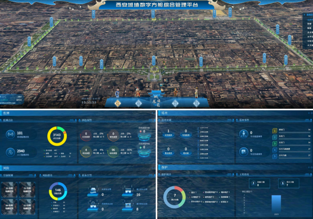 机勘院凭借在西安城墙领域的深厚积累与研究成果,被行业专家誉为城垣类保护的典范。基于这些成果,机勘院文保院进一步提炼转化,构建了以“数字方舱”为核心的综合管理平台。通过“一个数据底座”与“一套管理平台”的紧密互联,实现了城墙隐患排查、监测研判及预防性保护成果的高效整合与应用,覆盖了四大核心保护场景。这一创新举措不仅充分挖掘了数据要素的巨大潜力,更彰显了科学技术对文物事业发展的强大支撑作用。