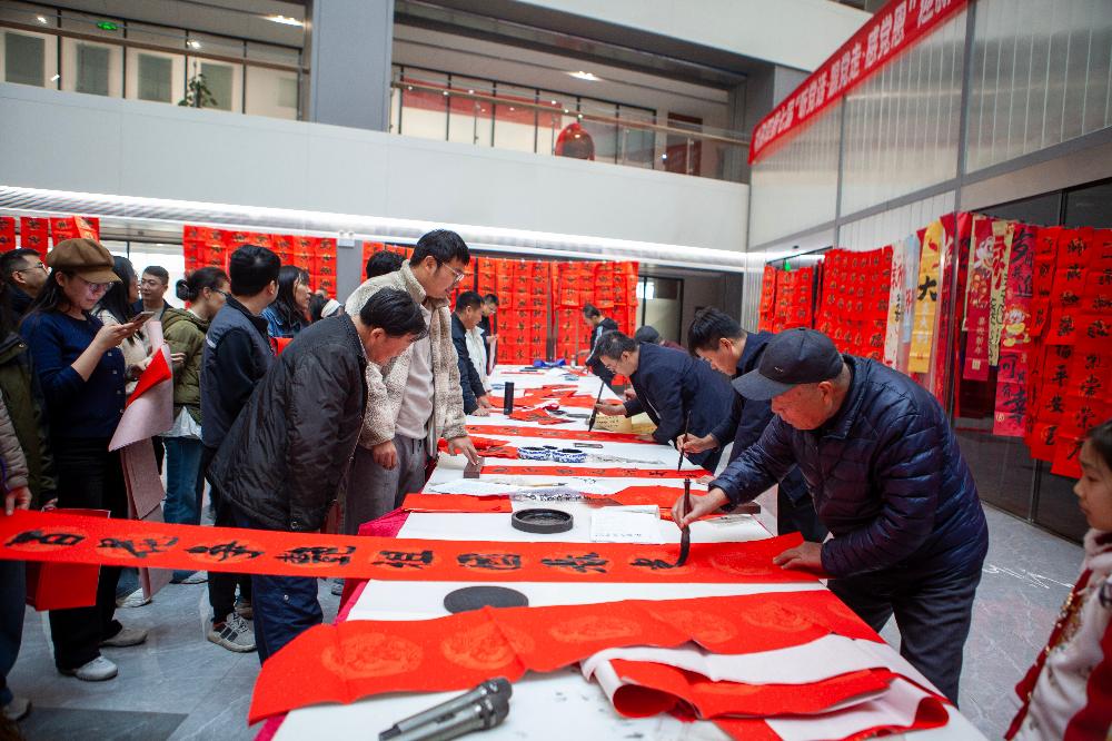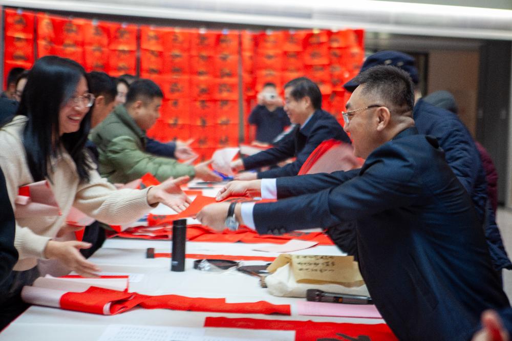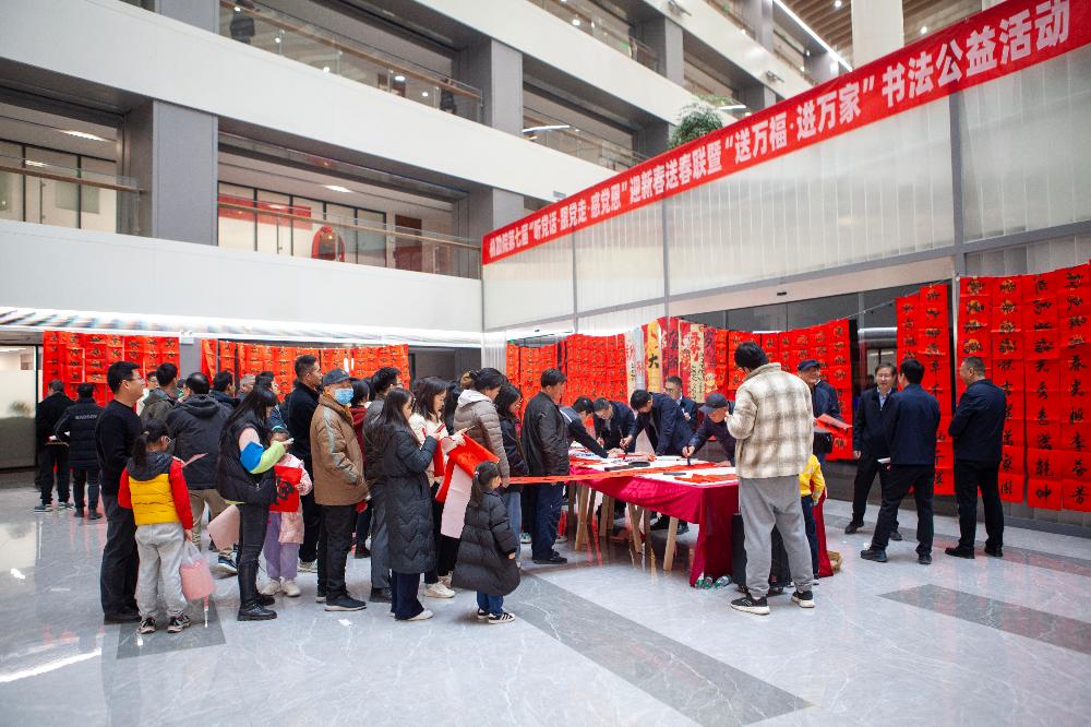 现场气氛浓厚、热闹非凡,红色春联悉心铺开,墨香四溢。书法爱好者们热情高涨,在挥毫泼墨间,将新年的诚挚祝福诉诸笔端,一个个饱含神韵的“福”字、一副副满载新春祝福的春联精彩呈现。职工们接过一句句吉祥如意的新年贺语,既感受了中华传统文化的魅力,又增添了对新年美好生活的憧憬和向往。活动营造了祥和温馨的年节氛围。