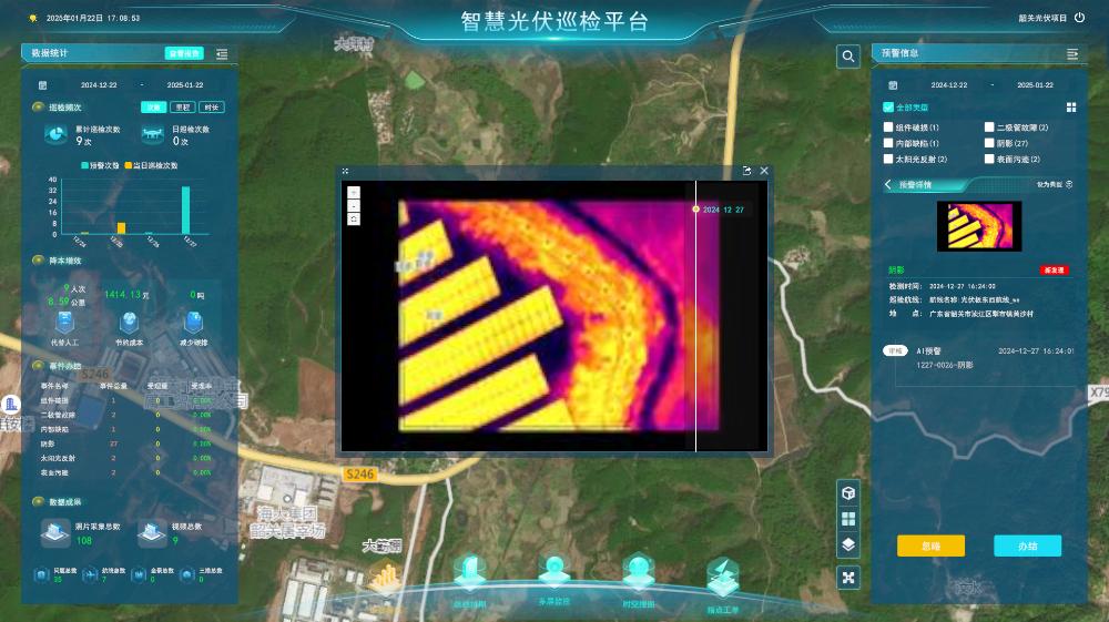 通过该平台,整合无人机组件清洗、无人机巡检、大数据模拟分析、热成像检测等先进技术,实现电站安全管理工作的现代化与智能化升级。这不仅为电站的高效稳定运行提供了有力保障,还为业主方提供了更加完善的新能源工程全产业链一体化服务,推动新能源行业的智能化发展。