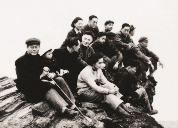 1954年春,在一机部二分局(集团下属企业中国联合前身)工作期间,江泽民同志(左一)与同事在无锡鼋头渚合影 。