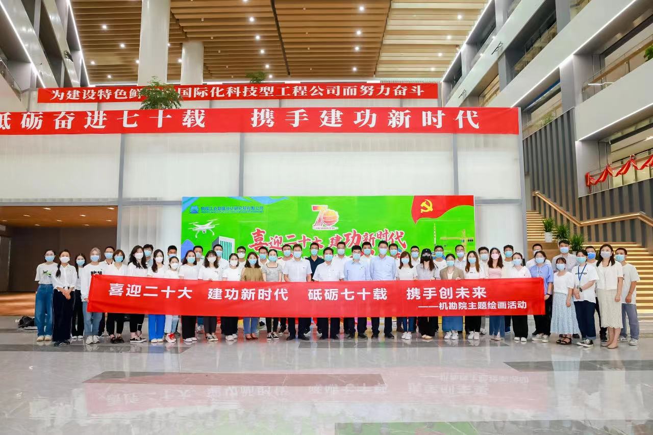 举办“喜迎二十大 共绘新蓝图”现场主题绘画活动,党员代表共同绘制了包含党徽党旗、机勘院发展历程标志物和辉煌成就的巨型油画幕墙,共同完成的崭新发展蓝图大大提高了党员干部的凝聚力和战斗力,在对企业未来发展的规划里,大大强化了机勘院党建“红底色”。