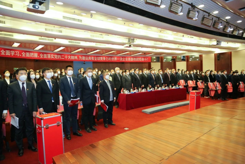 总部机关党委书记刘祖晴代表集团总部机关党委作了题为《全面学习、全面把握、全面落实党的二十大精神 为建设具有全球竞争力的世界一流企业总部而团结奋斗》的工作报告。