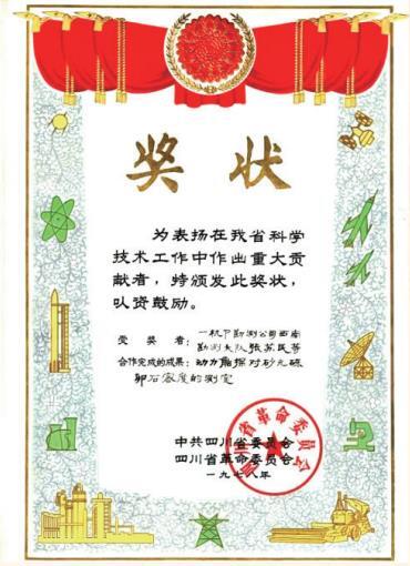 1978 年 张苏民同志研究成果“动力触探对砂圆砾卵石密度的测定”获奖