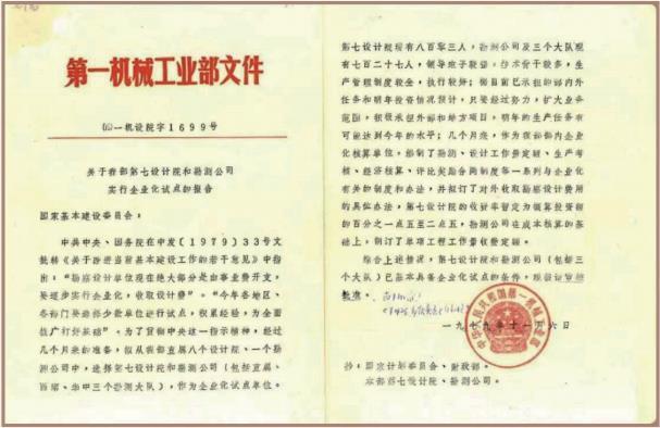 1979 年 第一机械工业部勘测公司实行企业化试点