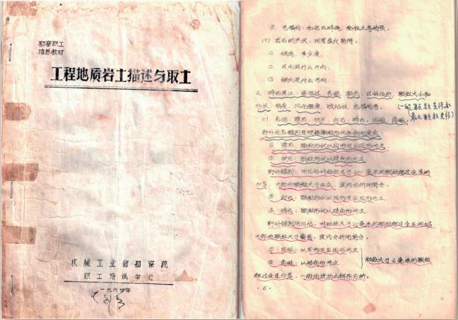 1984 年 我院职工手写培训教材《工程地质岩土描述与取土》