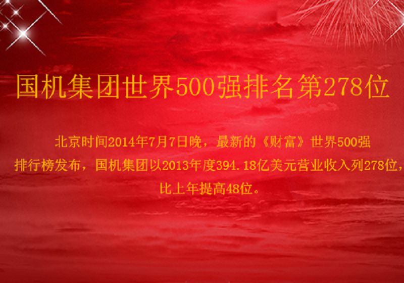 【概要描述】 【概要描述】北京时间7月7日晚,《财富》杂志面向全球同步发布了2014年世界500强企业名单,国机集团以394.18亿美元的营业收入名列第278位,比上年提高48位。