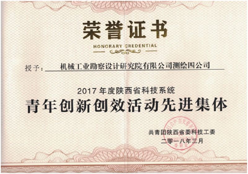 【概要描述】 【概要描述】近日从陕西省科技团工委传来喜讯,测绘工程院测绘四公司喜获“2017年度陕西省科技系统青年创新创效先进集体”荣誉称号。