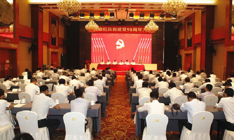 为纪念中国共产党成立98周年,激励全体党员干部学习贯彻习近平新时代中国特色社会主义思想和党的十九大精神,不忘初心、牢记使命,进一步提高党员干部队伍凝聚力、战斗力,充分发挥党组织战斗堡垒作用和共产党员先锋模范作用,6月27日,我院隆重召开庆祝建党98周年大会。院党政班子、高管,纪委、工会及团委委员,职能部门、板块及内设部门正副职,各党支部委员和关键岗位员工及获奖代表共120余人与会。在家党政领导班子成员黄玉明、叶志刚、张继文、郑建国、夏玉云、许王琦主席台就坐。