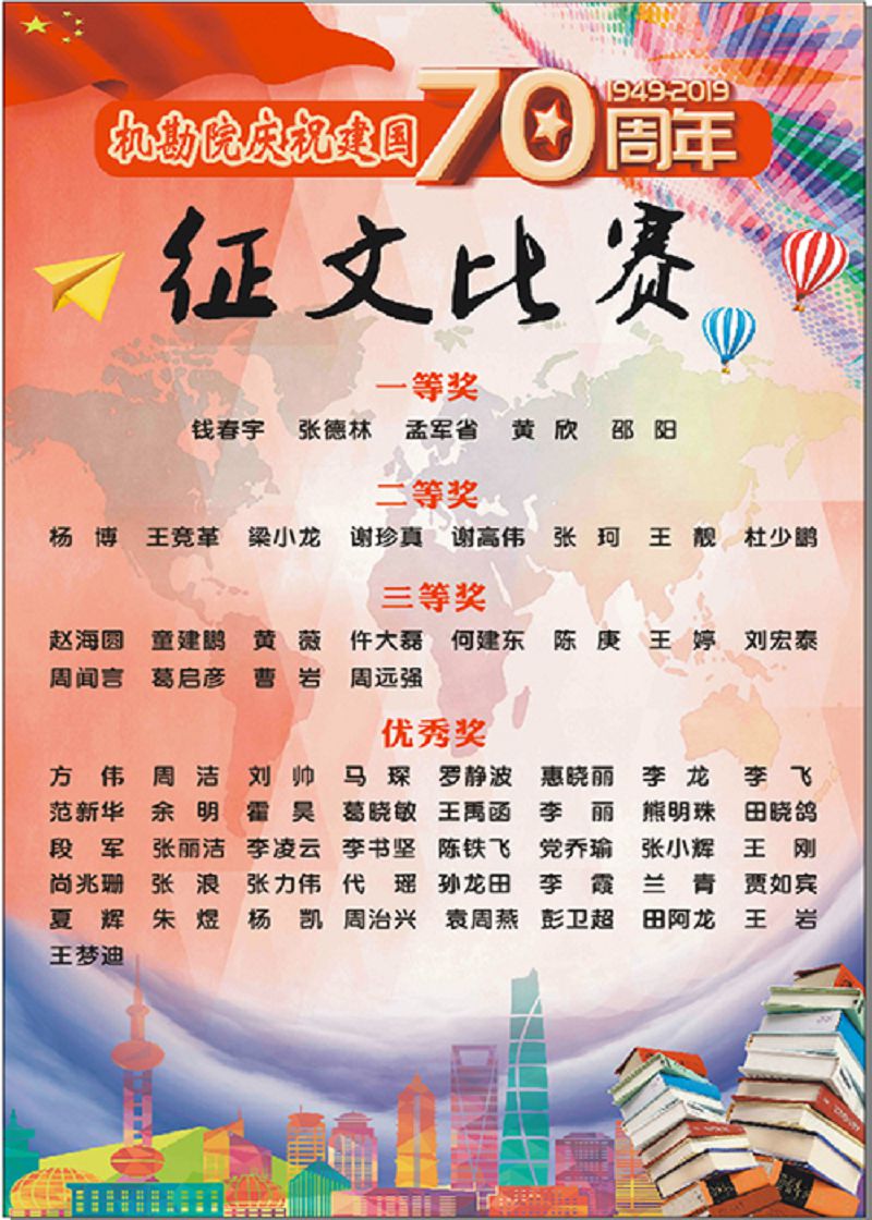 9月26日, “共圆中国梦、开创新时代” 征文活动成功举办。全院各支部、部门同事积极参与,累计收到美文66篇,经过专业评委赏析评分,现已评出一等奖5名,二等奖8名,三等奖12名,优秀奖若干。