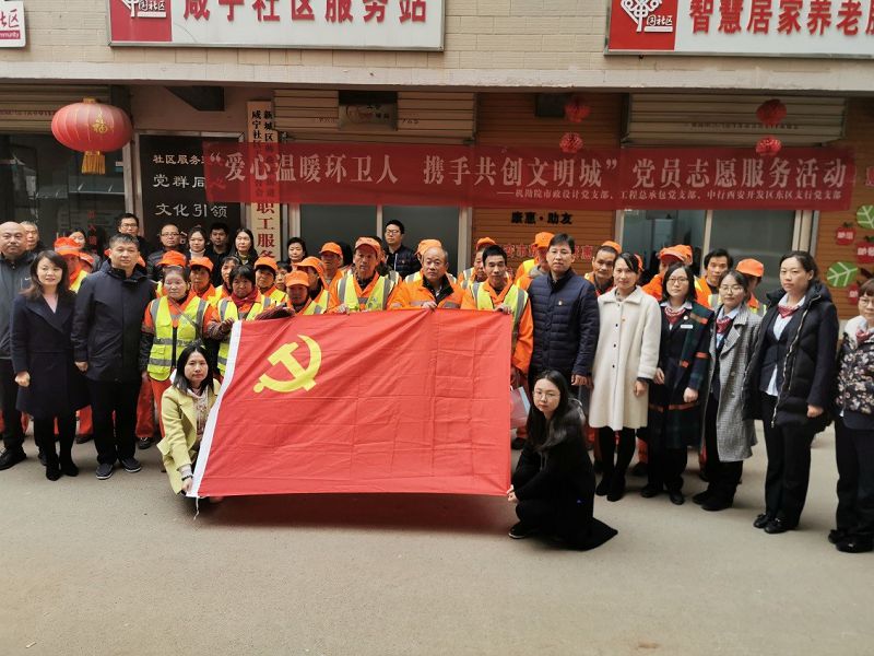 市政设计党支部、工程总承包党支部与中行西安开发区东区支行党支部联合举行“爱心温暖环卫人 携手共创文明城”党员志愿服务活动,为环卫工们亲手送上精心准备的防风手套、耳护、厚袜子、口罩、水杯等慰问物品,小小的礼物融入了志愿者们浓浓的关爱,也表达了对环卫工辛勤劳动的感谢,感谢他们在平凡岗位上不平凡的付出,同时倡议大家共同爱护身边环境,积极发挥党员先锋模范作用。
