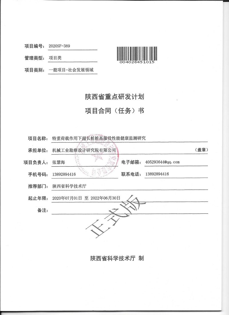我院获批的三个项目分别是:陕西省重点研发计划项目:“黄土沟壑区新建重大工程场地生态与地质环境监测评估关键技术研究与示范”、“特重荷载作用下超长桩桩基服役性能健康监测研究”;陕西省技术创新引导专项(基金)计划项目:“北斗智能监测技术在岩土工程中的应用研究”。