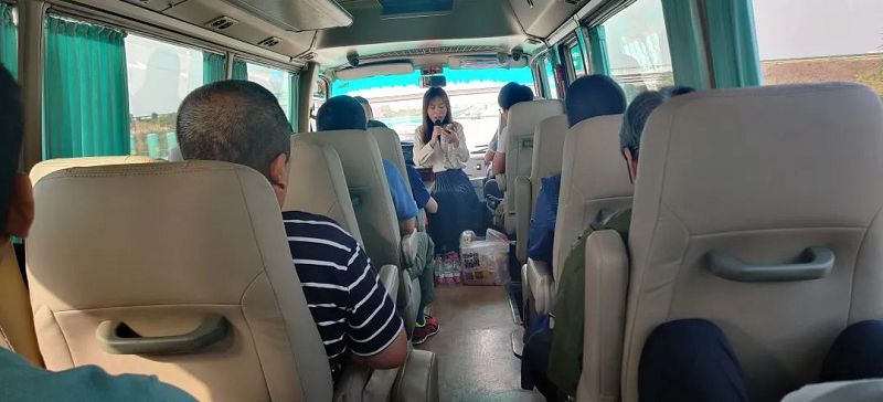 在欢乐而庄严的红色旅途中,同志们纷纷亮嗓,举办了一场小型现场演唱会!有脍炙人口的红歌:我和我的祖国、十送红军、我们走在大路上、映山红,也有经典好听的流行歌曲:夜空中最亮的星、西安人的歌、半壶纱。一路欢歌,一路笑语,大家在为伟大祖国喝彩、为幸福生活点赞的同时由衷感叹作为中国人的自豪!