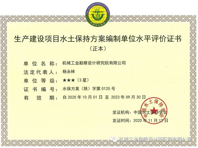 近日,经陕西省住房和城乡建设厅、中国水土保持学会分别批准,我院喜获《工程造价咨询企业资质》、《生产建设项目水土保持方案编制单位水平评价3星》2项市场准入新资质,可从事资质证书许可范围内相应的建设工程造价咨询和环境工程领域相关的技术与评价服务。