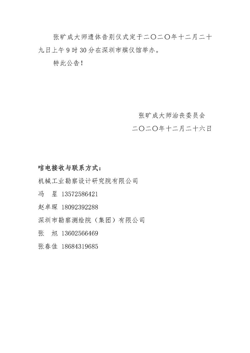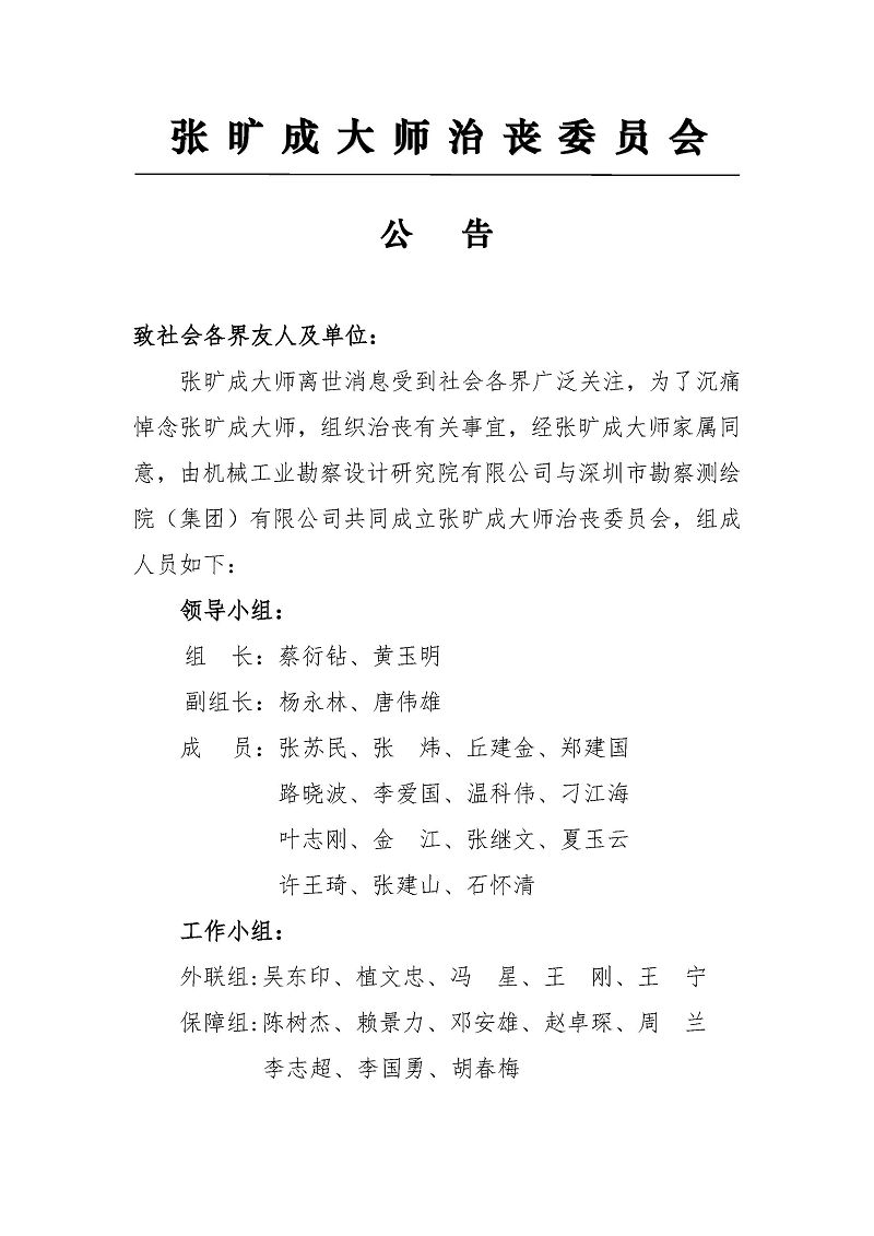 【概要描述】 【概要描述】张旷成大师治丧委员会公告