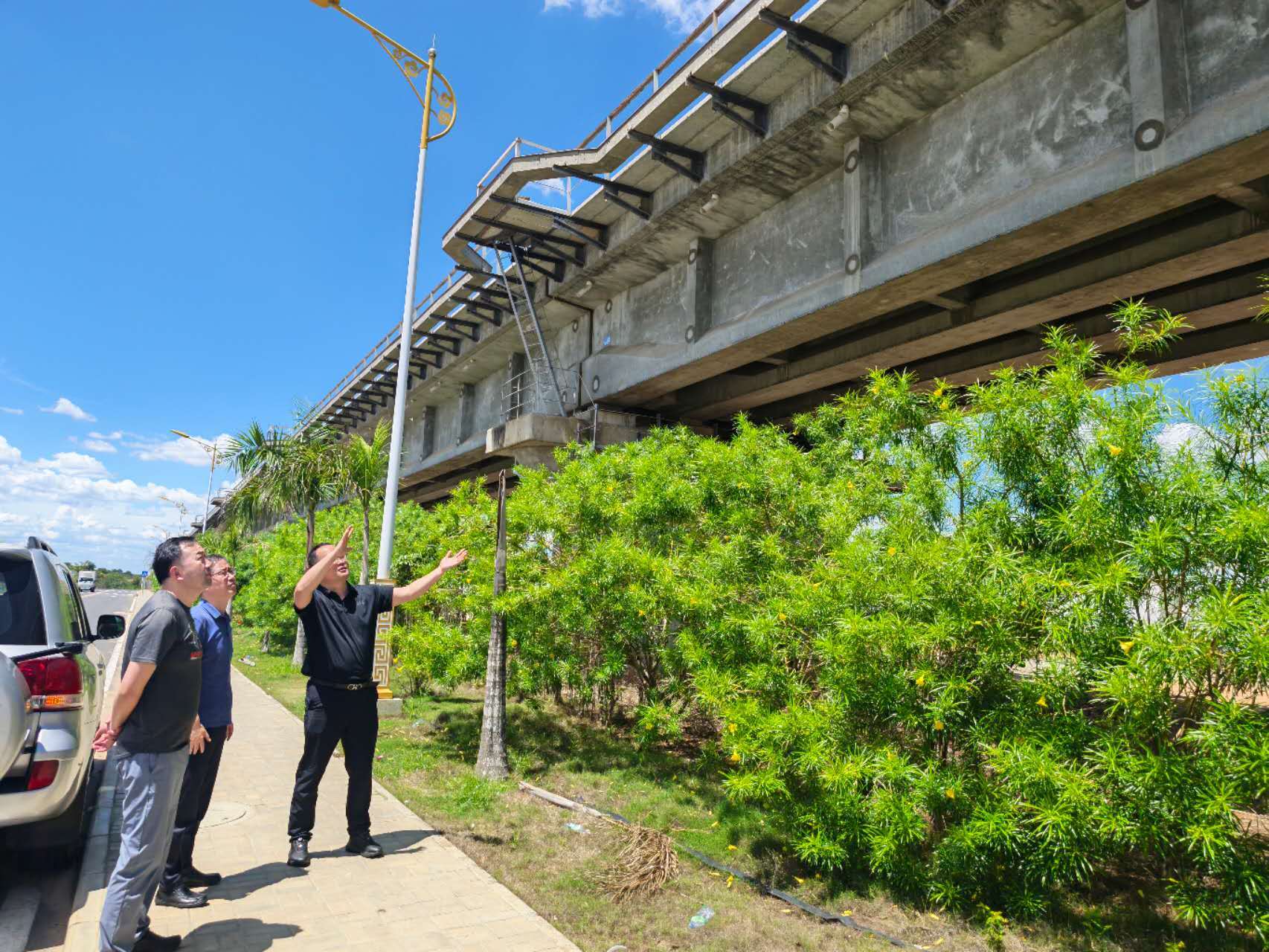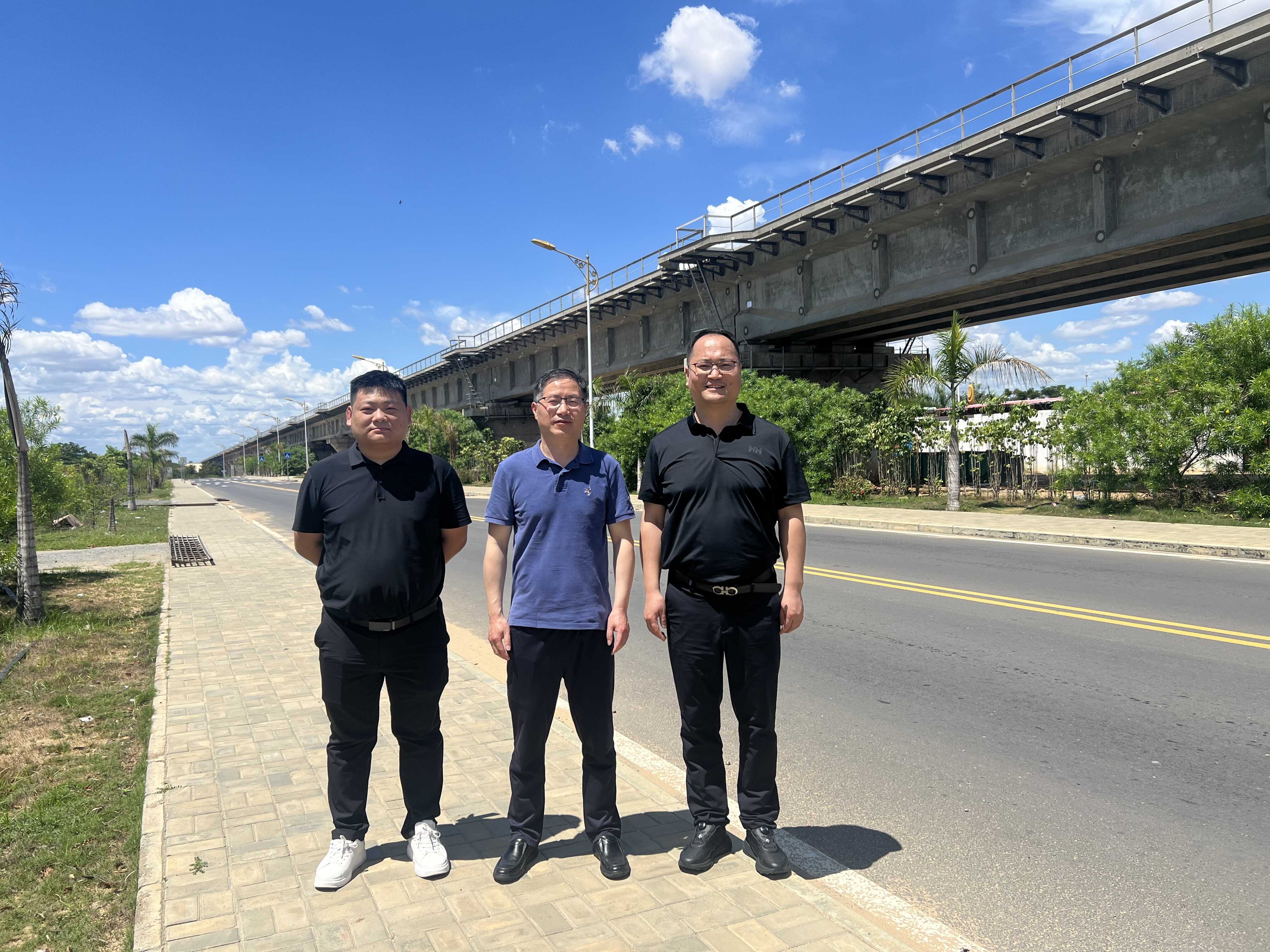 邵雪奎实地考察公司承建的罗安达新机场铁路特大桥项目,作为机勘院在安哥拉的代表性完工工程,项目优质的建设质量与良好的运营状态得到业主方充分认可。邵雪奎仔细查看工程实体质量,详细了解项目后期运维情况,要求团队认真总结项目勘察设计、施工管理的成功经验,为后续安哥拉及非洲区域同类项目提供技术与管理借鉴。