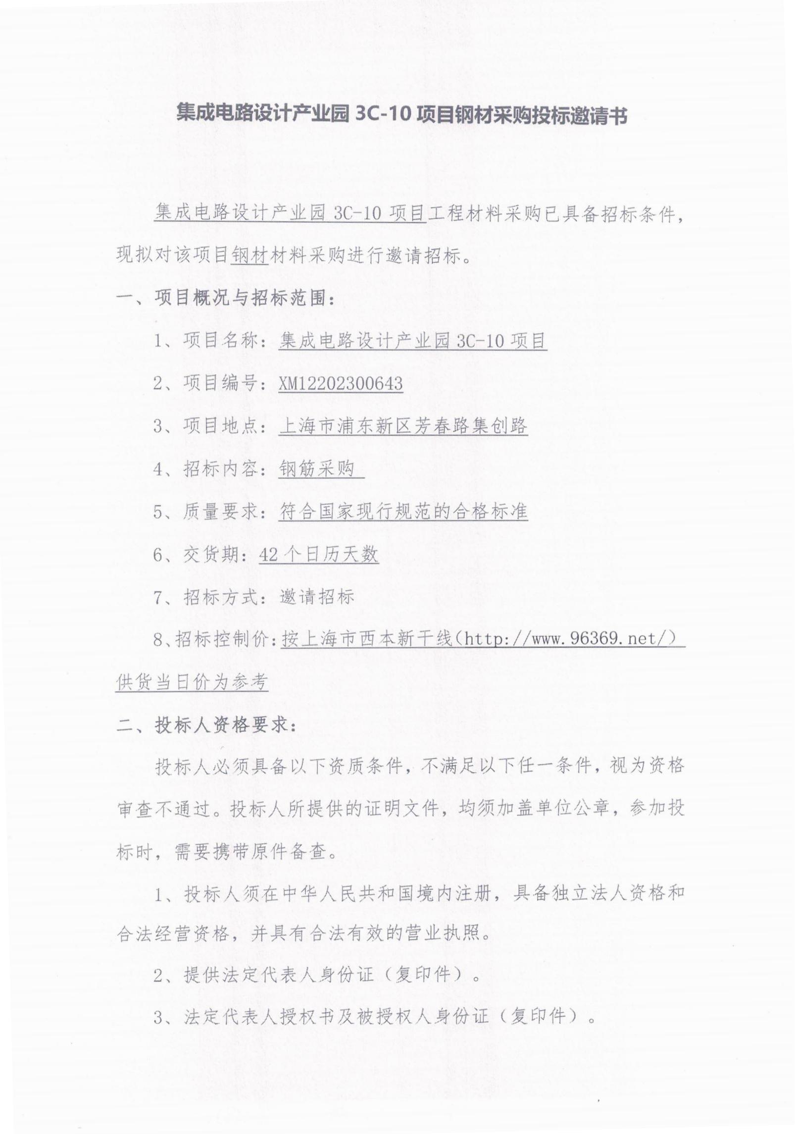 集成电路设计产业园3C-10项目钢材采购投标邀请书
