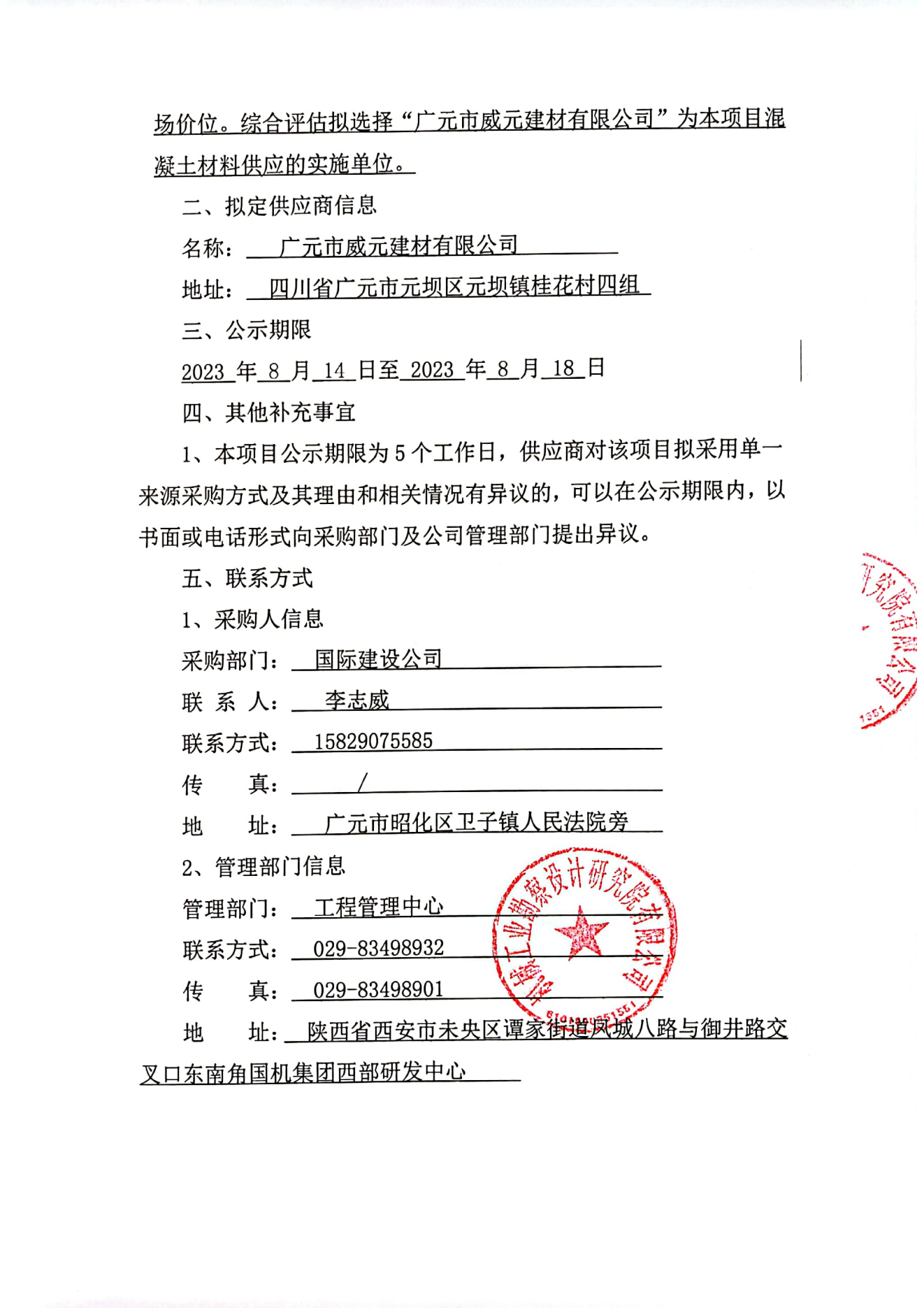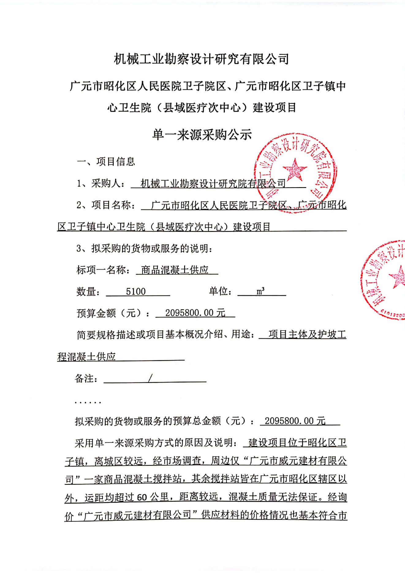 广元市昭化区人民医院卫子院区、广元市昭化区卫子镇中心卫生院(县域医疗次中心)建设项目混凝土单一来源采购公示