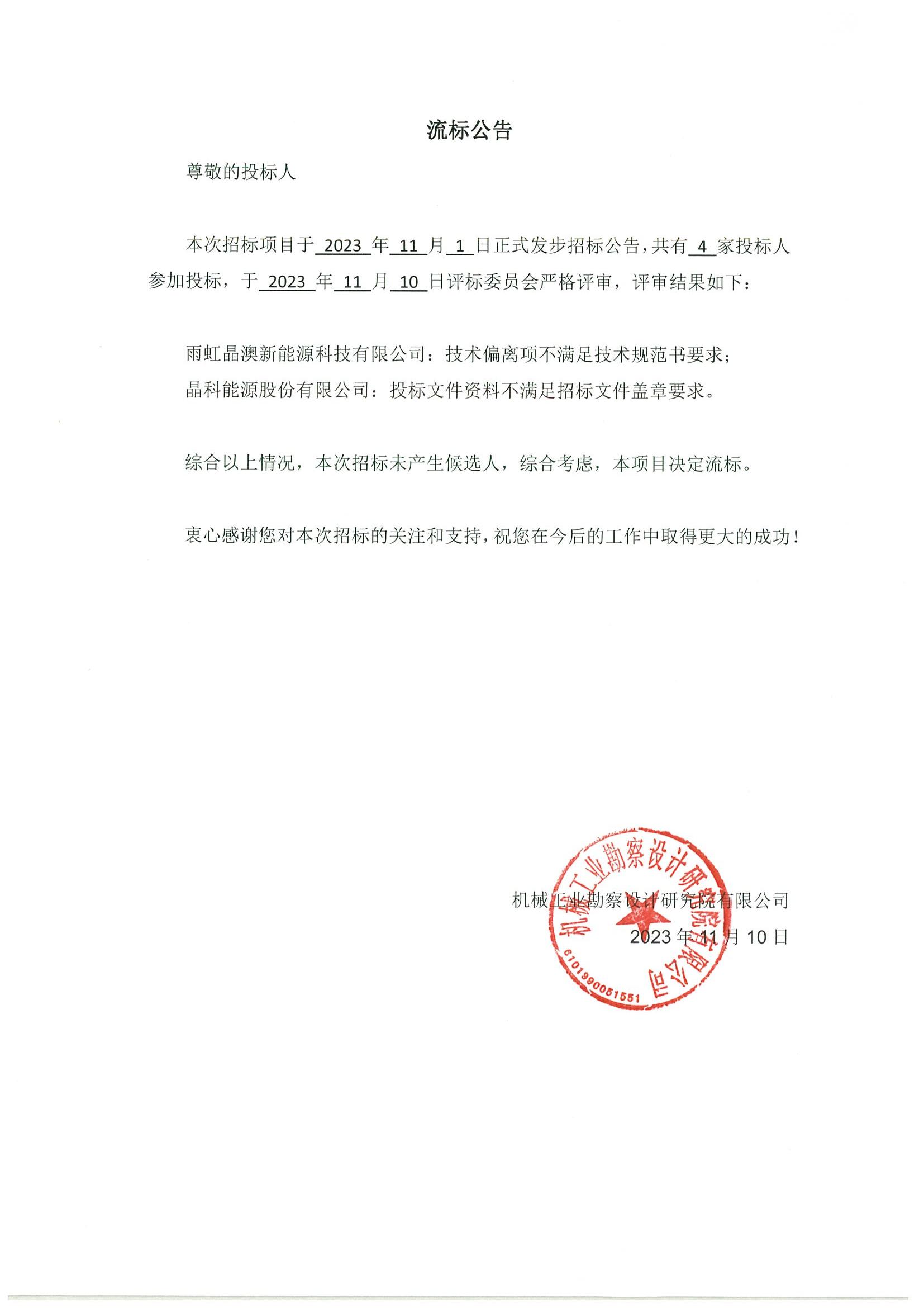 周口市川汇区渔光互补分布式光伏发电项目建设工程组件采购流标公告