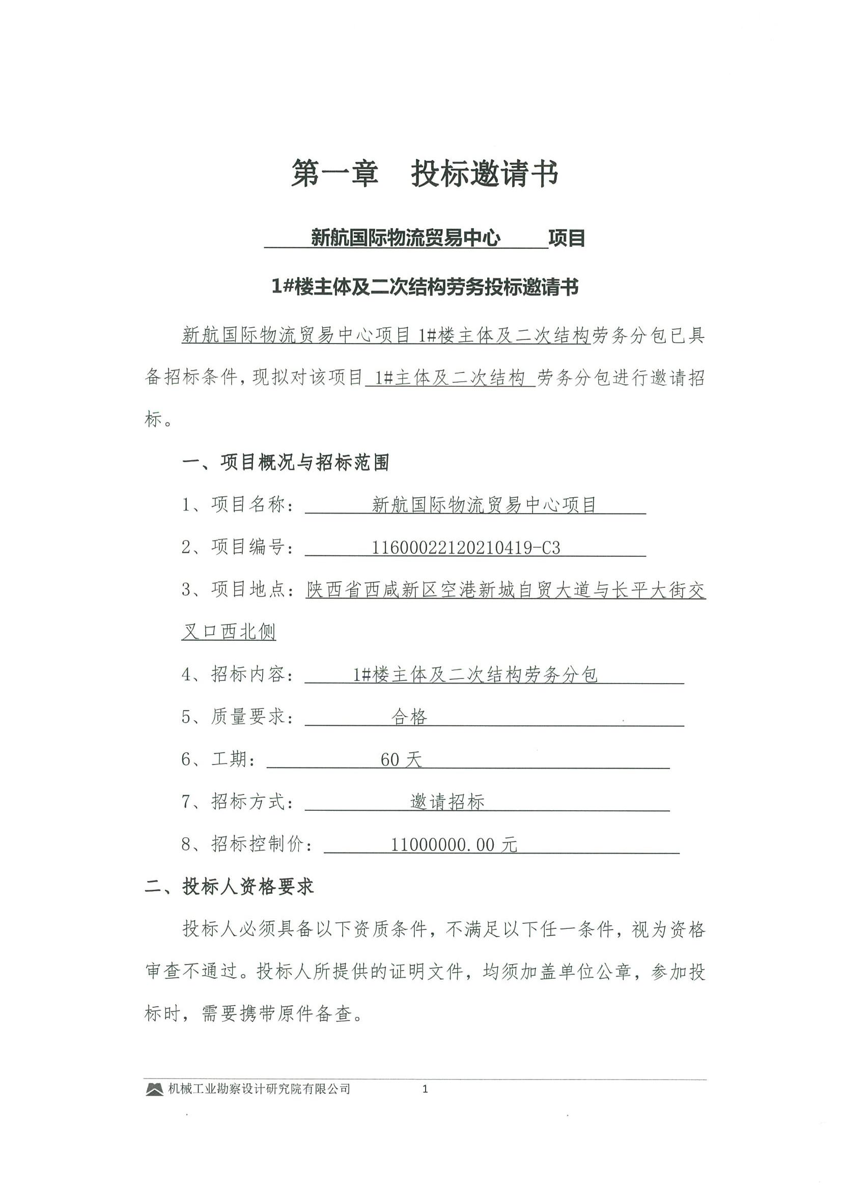 新航国际物流贸易中心项目-1#楼主体及二次结构劳务投标邀请书