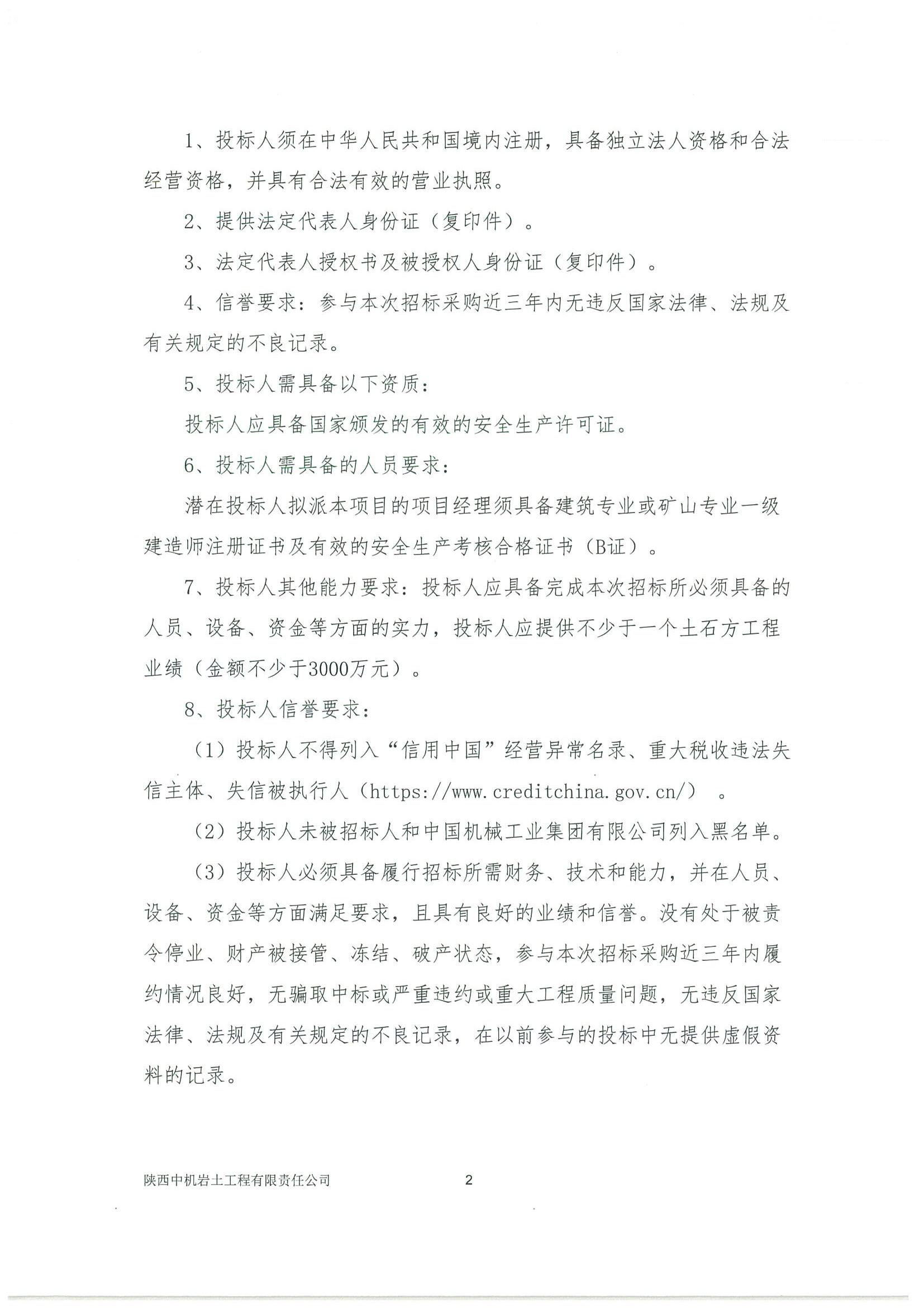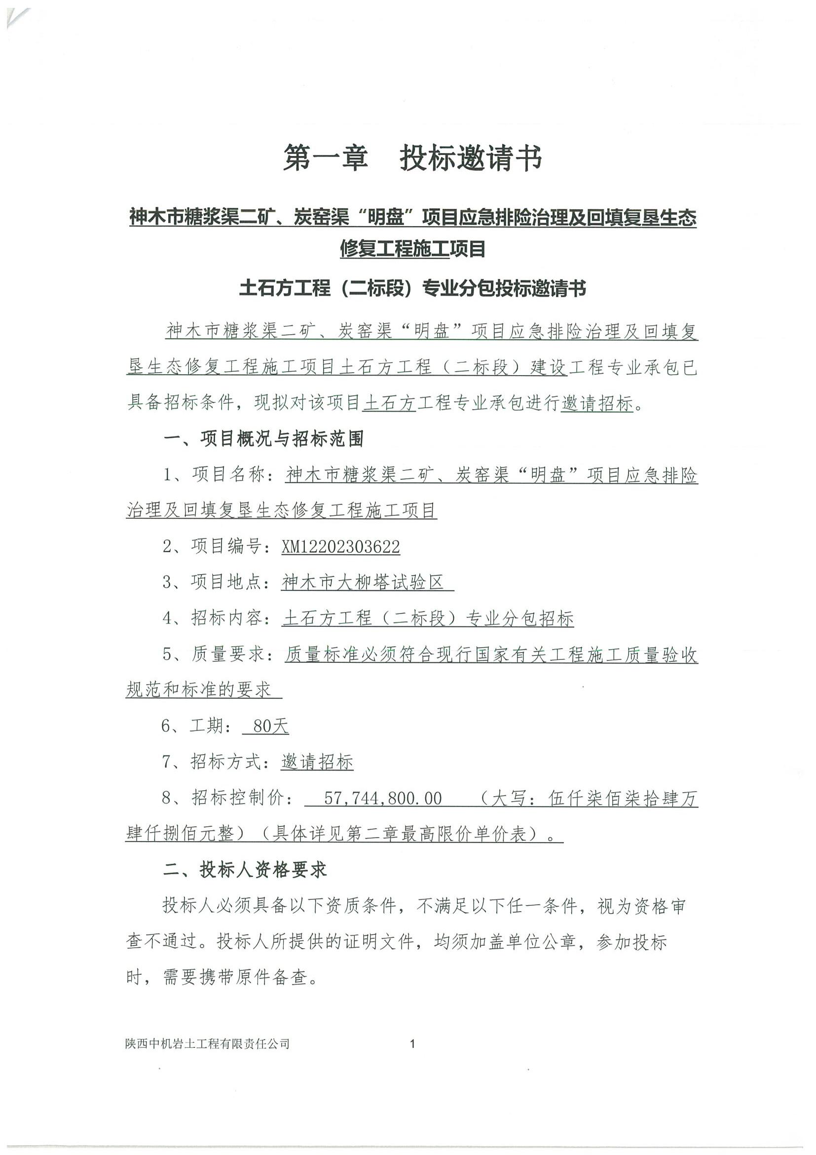 神木市糖浆渠二矿、炭窑渠“明盘”项目应急排险治理及回填复垦生态修复工程施工项目建设工程 土石方工程(二标段)投标邀请书