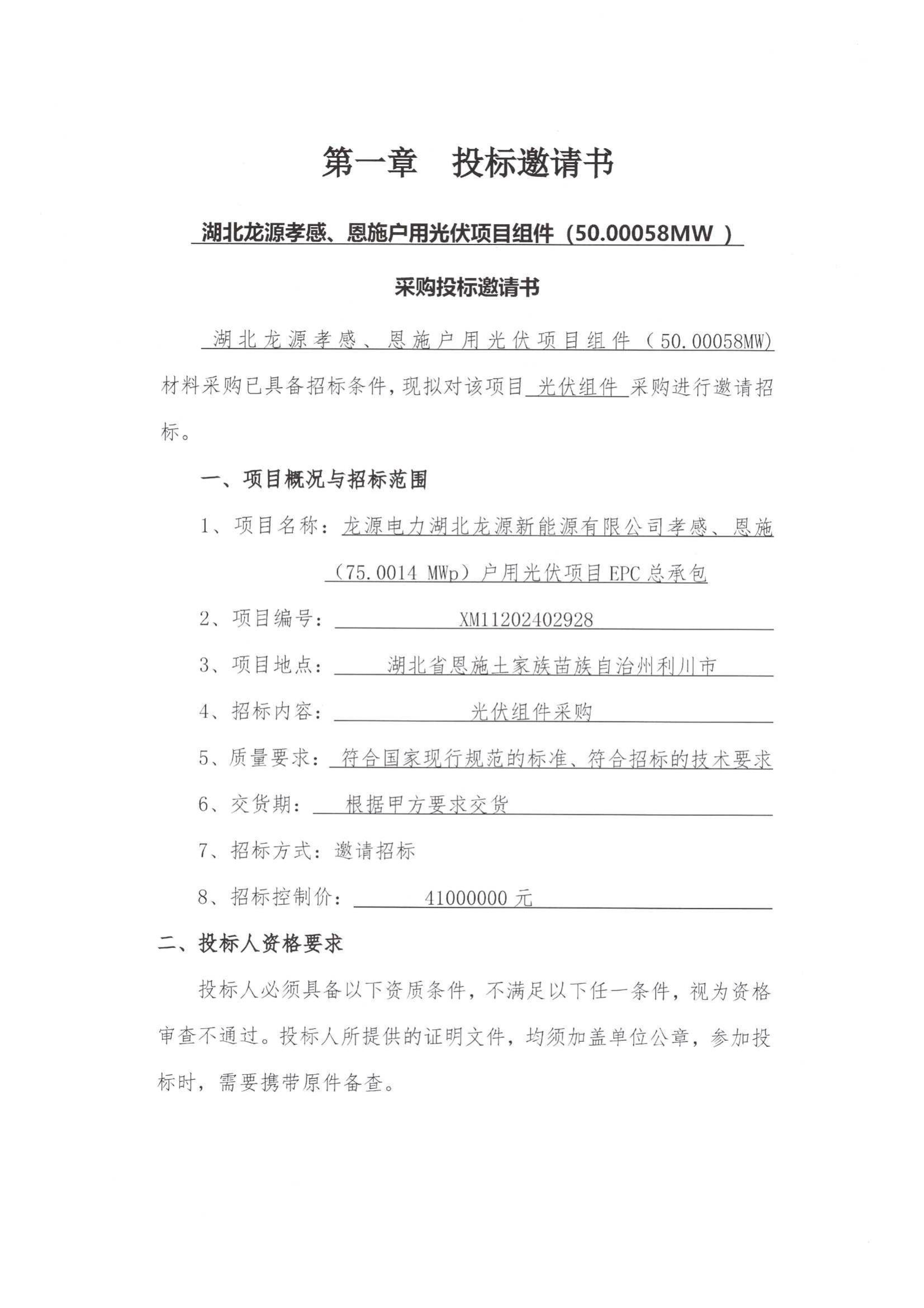 湖北龙源孝感、恩施户用光伏项目光伏组件(50.00058MW) 采购招标投标邀请书