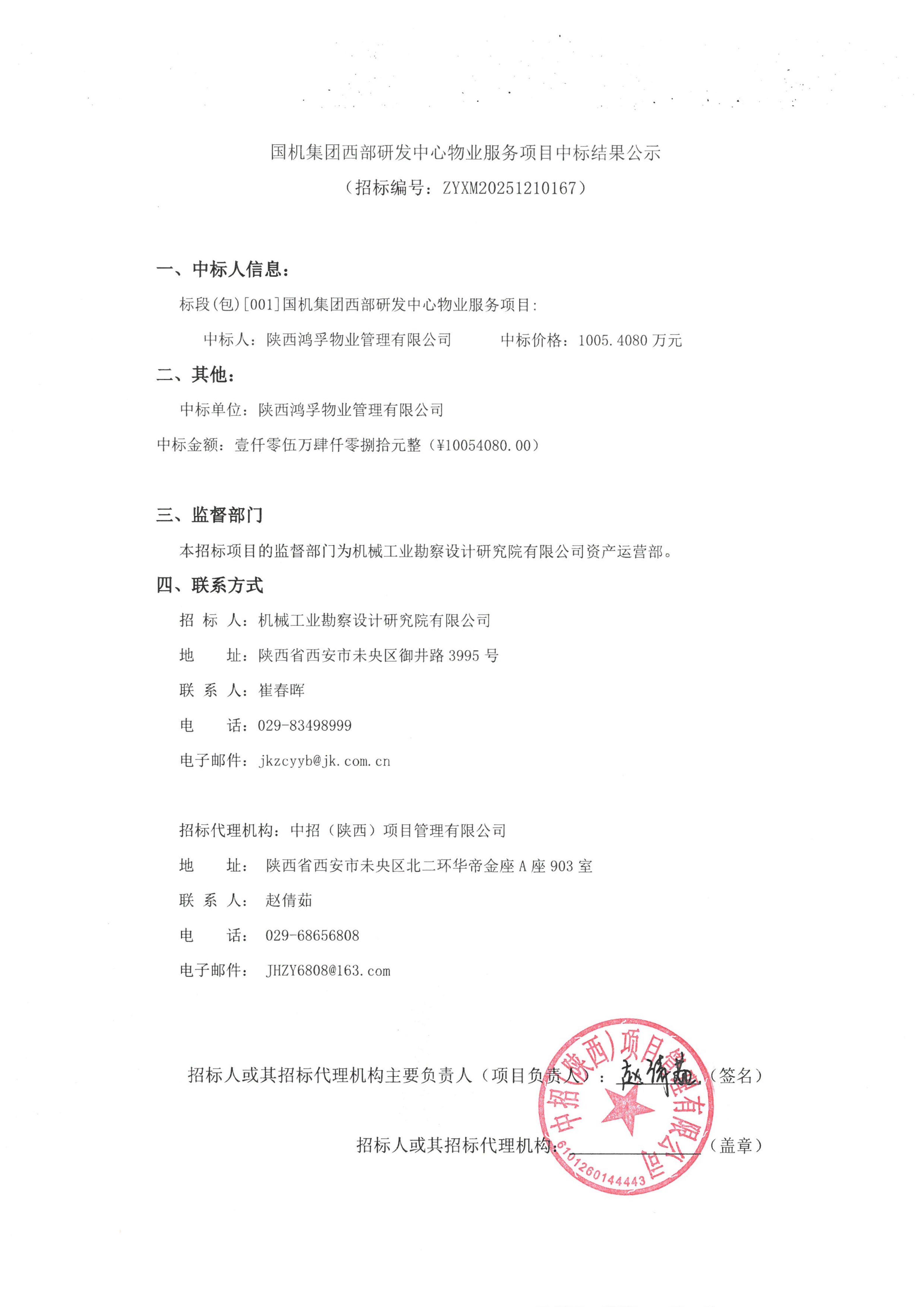 国机集团西部研发中心物业服务项目中标结果公示